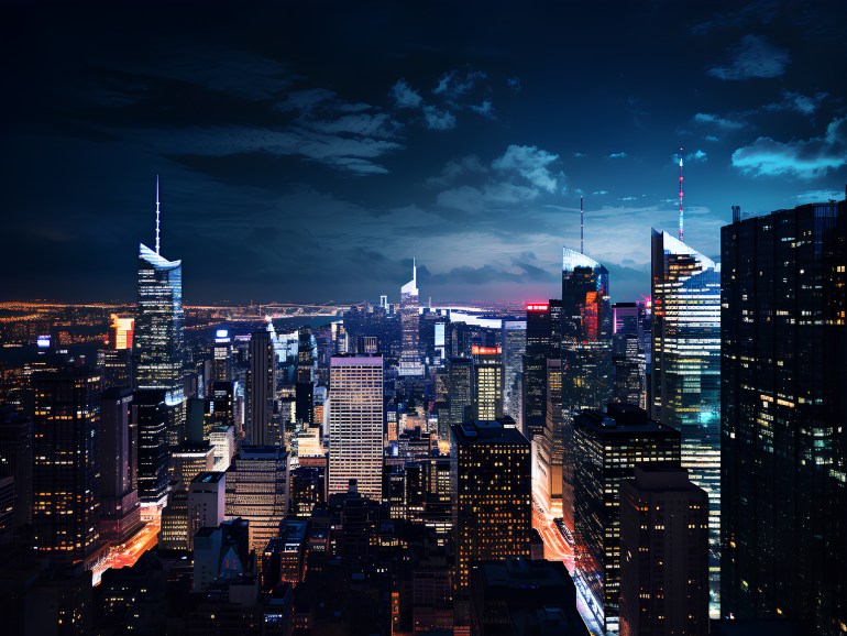 고층 빌딩들의 창문에서 새어나오는 불빛들은 마치 별자리처럼 반짝인다. 각각의 창문 뒤에는 누군가의 삶이 있고, 그들만의 이야기가 펼쳐지고 있다는 사실이 신비롭게 느껴진다. 어떤 창문은 밝게 빛나며 늦은 밤까지 일하는 직장인의 모습을 보여주고, 어떤 창문은 은은한 조명 아래에서 가족들이 함께하는 평온한 저녁 시간을 암시한다.